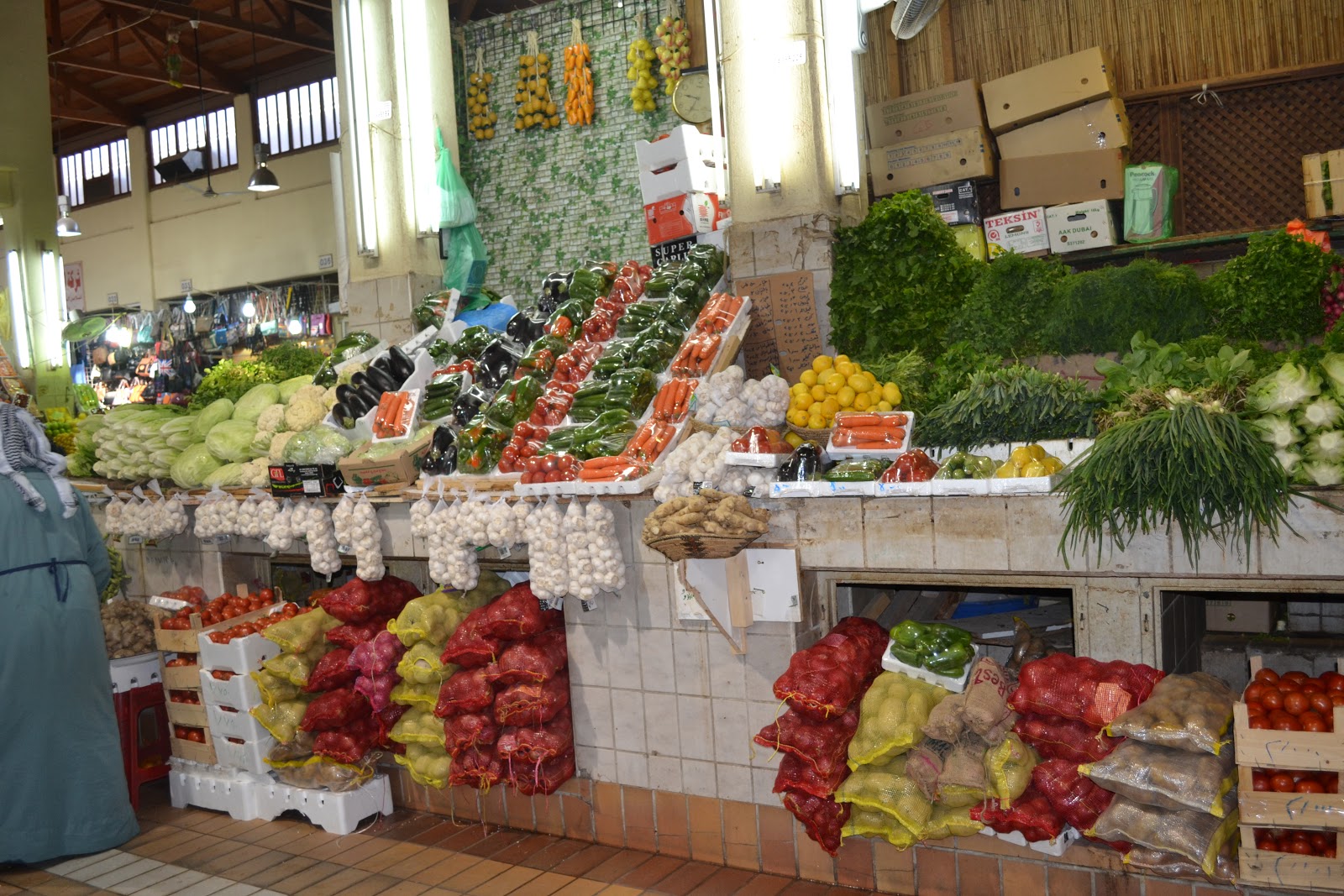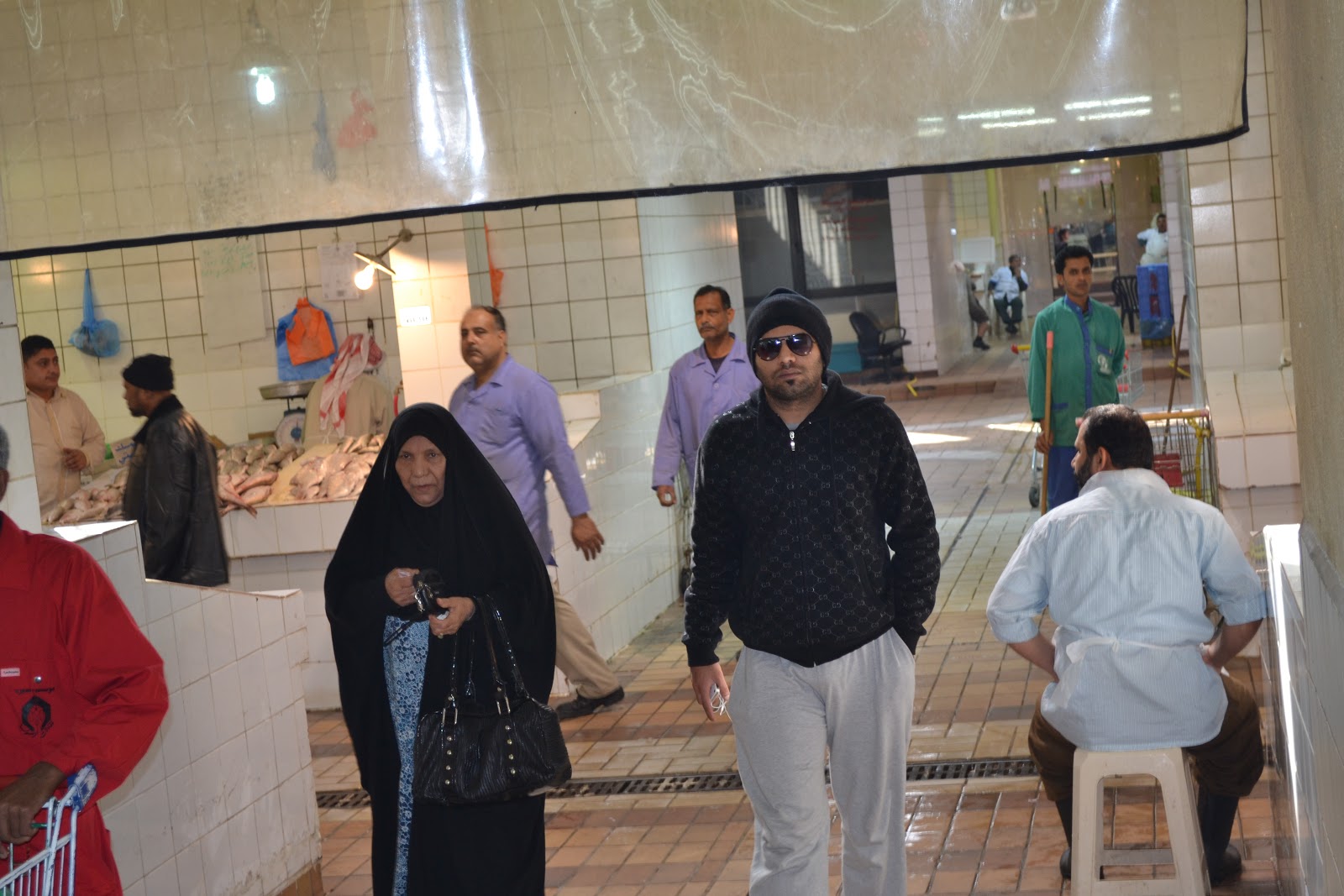 Quello di Istanbul è bello e grande, ma anche qui a Kuwait è abbastanza grande e con un suo fascino. Ci eravamo già andati con i bambini, ma con loro è dura farsi un idea precisa. Così martedì mattina, il nostro giorno free, io, Dru e Manu siamo andate in perlustrazione. Io munita delle mia macchina fotografica e Manu preoccupata che le mia solita “esuberanza” non venisse male interpretrata. Ci sono diversi ingressi e noi siamo finite subito in quello dedicato alla frutta,carne, pesce.